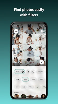 Amazon Prime ممبران "Amazon Photos" پر مزید خصوصی فوائد سے لطف اندوز ہوتے ہیں، جن میں تصاویر کے لیے لامحدود اسٹوریج اور ویڈیوز کے لیے 5 GB کی علیحدہ گنجائش شامل ہے۔ انہیں مزید بہتر سرچ فلٹرنگ اور پرنٹس کی مفت ڈیلیوری جیسی سہولیات بھی میسر ہیں۔ "Amazon Photos" کو اپنی یادوں کو پرنٹس، حسب ضرورت تحائف، اور گھر کی سجاوٹ میں بدلنے کے لیے ایک مکمل مرکز سمجھیں۔ چاہے وہ فریم کے لیے تیار پرنٹس ہوں یا دیوار پر لٹکانے کے لیے آرٹ، آپ آسانی سے ایپ سے خریداری کر سکتے ہیں اور خاص مواقع کے لیے منفرد یادگاریں تخلیق کر سکتے ہیں۔ "Amazon Photos" یقینی بناتا ہے کہ آپ کی تصاویر اور ویڈیوز بادل میں محفوظ رہیں، چاہے آپ کے آلات گم ہو جائیں یا خراب ہو جائیں، اور آپ کو 24/7 کسٹمر سپورٹ بھی فراہم کی جاتی ہے۔ اپنی ضرورت کے مطابق مزید اسٹوریج حاصل کرنے کے لیے لچکدار ماہانہ اور سالانہ پلانز کا انتخاب کریں، اور انہیں کسی بھی وقت منسوخ کر سکتے ہیں۔